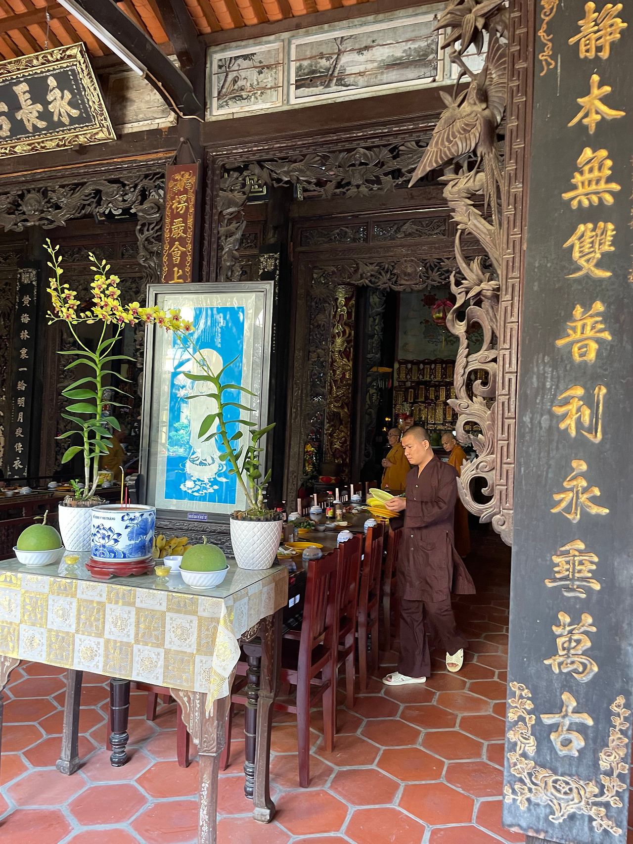 빈짱사 라는 절에 들렀다. 스님들이 공양 준비 중이었다. 고요하면서 정확하게 접시를 놓고 식사 준비를 하는 그 행위 자체가 경건한 기도였다.