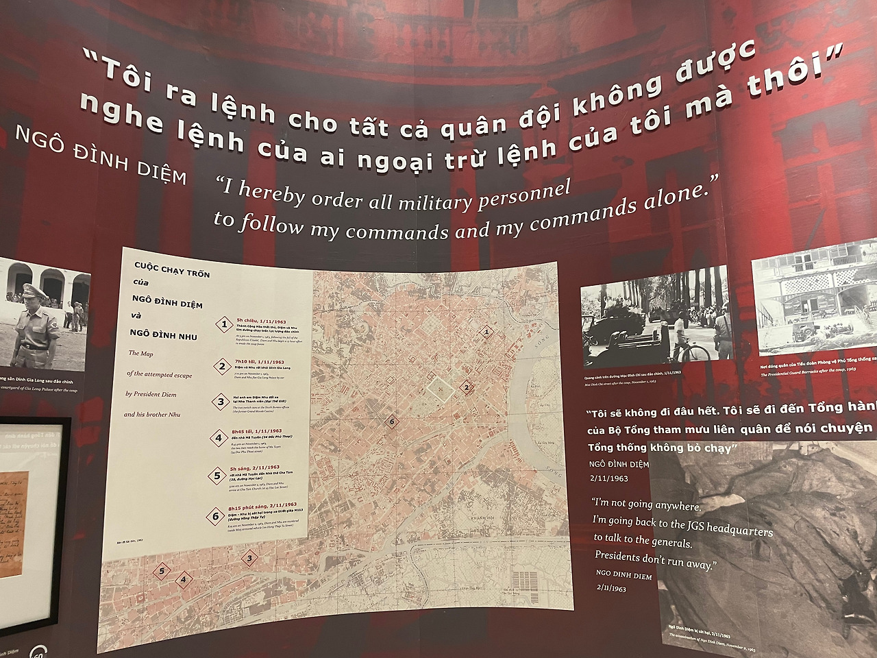 궁에 들어가면 지하에 영상실이 있다. 이곳에서 궁의 변천사를 담은 영상물을 먼저 관람하면 좋다. 식민지 시절 화려한 왕궁의 모습과 이후 디엔비엔푸 전투에서 패전 후 변천과정 또 남베트남 대통령의 집무실로 어떤 역할을 했는지, 베트남 전쟁으로 궁전이 함락되던 당시의 모습을 볼 수 있다.