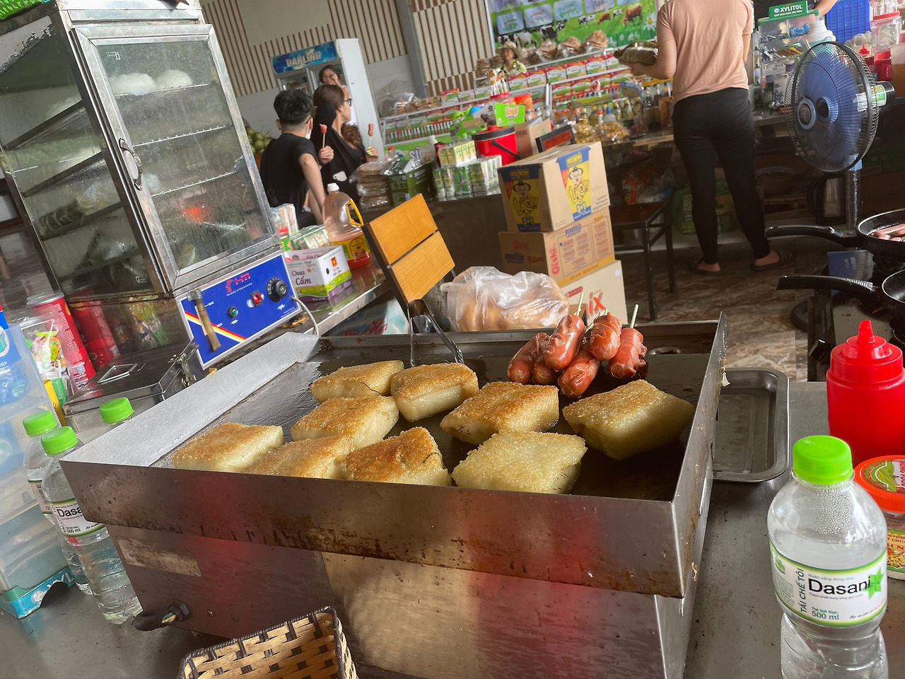 아침도 못 먹어서 샌드위치와 찐계란, 떡, 옥수수, 카스텔라 등을 사 먹었다. 거의 100,000동 정도나 들었다. 사실은 베트남의 샌드위치 맛은 어떤지, 베트남의 떡은 우리나라 떡과 무엇이 다른지, 카스텔라는 얼마나 보드라운지 뭐든 궁금해서 이것저것 골라봤다. 샌드위치는 반미를 납작하게 눌러서 팔았다. 기름에 달달 구운 떡은 달콤하고 안에 팥 같은 소가 들어있다. 군 옥수수는 우리나라 옥수수와 똑같고, 카스텔라는 어렸을 적 먹던 그 옛날 카스텔라 맛이었다. 호기심은 만족시켰으니, 다음부터는 그냥 쌀국수나 사 먹을까 싶다. 화장실은 유료로 3,000동이다. 즉석음식도 팔고, 식당도 있고, 스낵이나 음료수도 팔고, 아이스크림도 팔고. 우리나라와 비교하면 규모는 작지만 있을 건 다 있다.