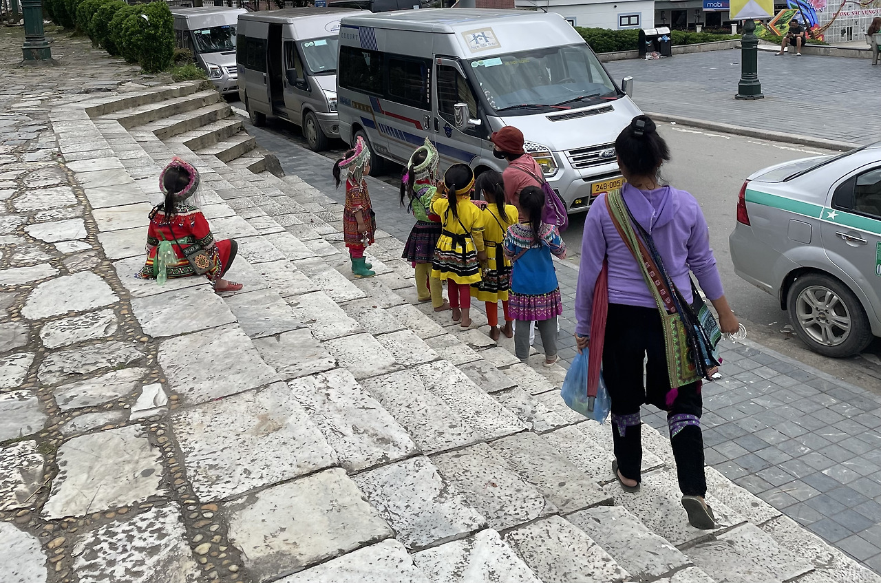 사실, 이곳 사파에는 이들이 먼저 살았다. 이어 이 마을이 좋아 사람들이 몰려들어서 지금과 같은 큰 건물과 쇼핑센터와 식당들이 들어섰는데, 이들은 여전히 가난하게 살 수밖에 없어 한창 재밌게 뛰어놀거나 학교에 다녀야 할 아이들에게 물건 파는 일을 시키는 이곳 소수민족들의 현실을 눈으로 확인하는 순간이었다.