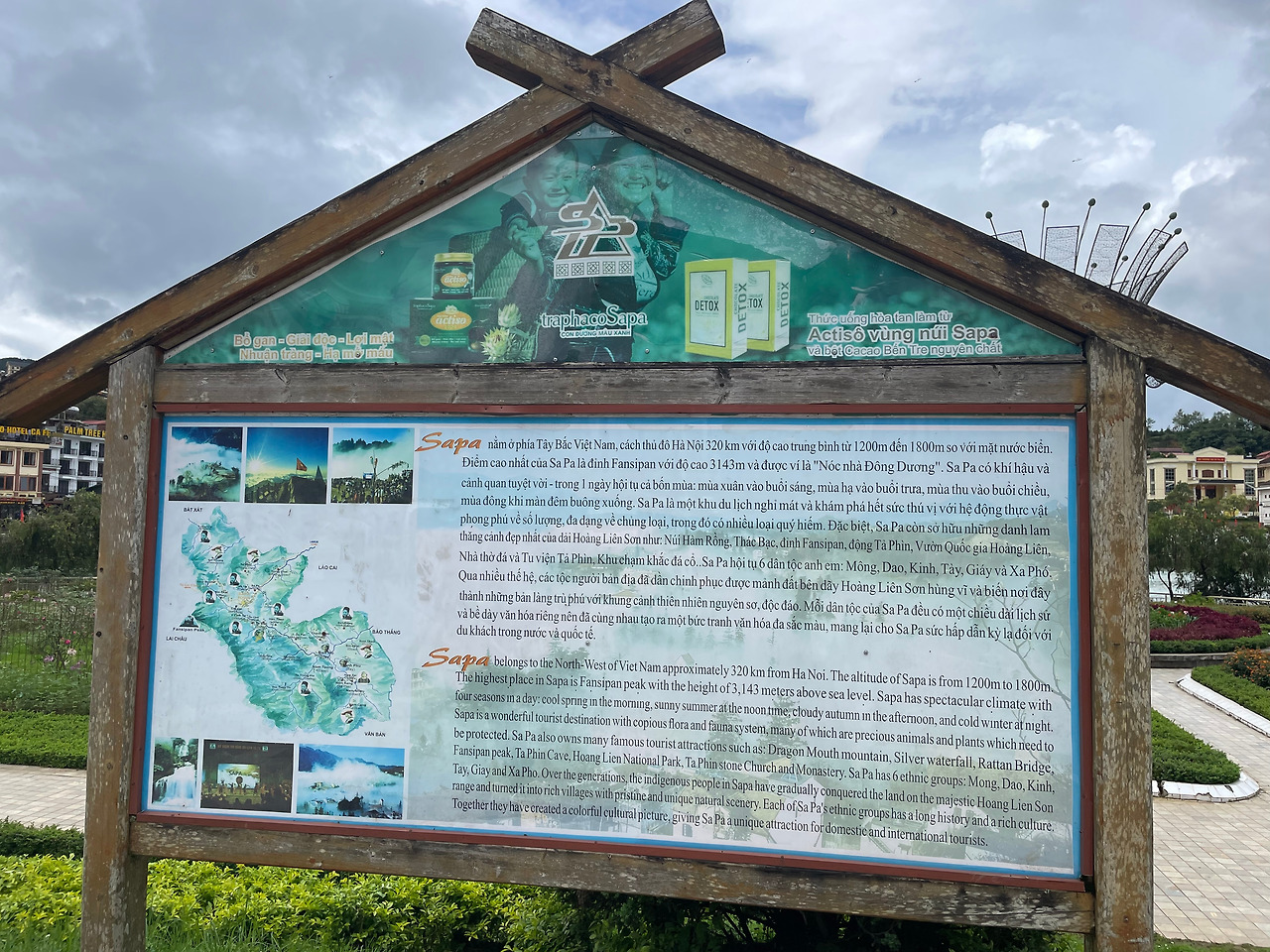 사파는 생각보다 작지 않았고, 생각보다 전원적이지 않았다. 하지만 생각했던 대로 서늘했다. 사진에서 보던 그 산으로 둘러싸인 공간은 어디일지 궁금했다. 조금 전 막 비가 지나갔는지 길에 물기가 가득했다. 버스정류장부터 약 30-40분간을 걸었지만 전혀 힘들다고 느껴지지 않을 만큼 선선한 날씨다. 숙소까지 걸어가며 사파 호수를 구경하고 이어 상점과 식당 건물과 사람들로 벅적이는 대로를 지나면 선플라자 건물과 광장과 사파성당이 나온다. 여기까지 웬만한 소도시 같았다. 사파 안내표지판을 읽어보면 사파는 하루에 사계절의 날씨가 다 들어있다고 한다. 아마도 비가 그친 그때는 가을인 것 같았다.