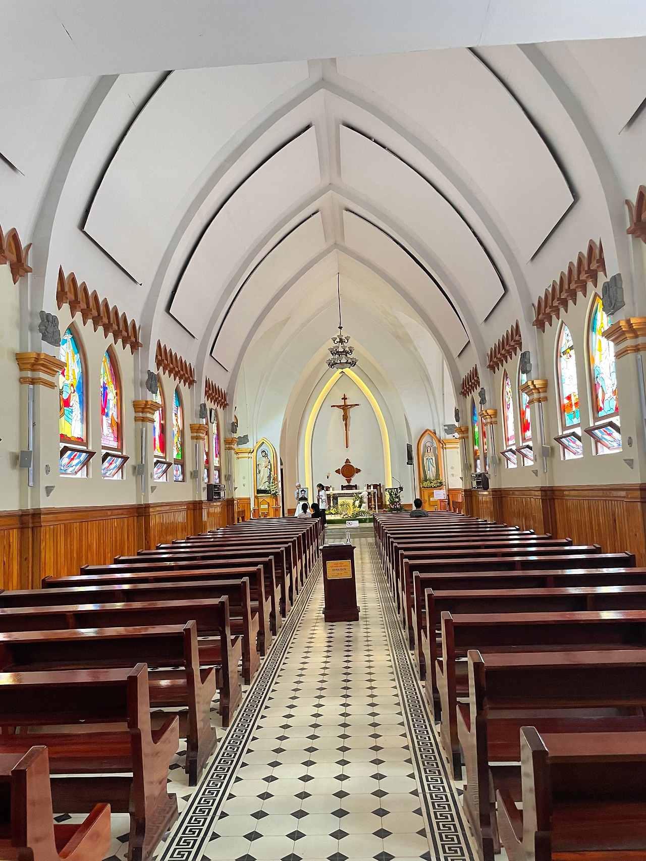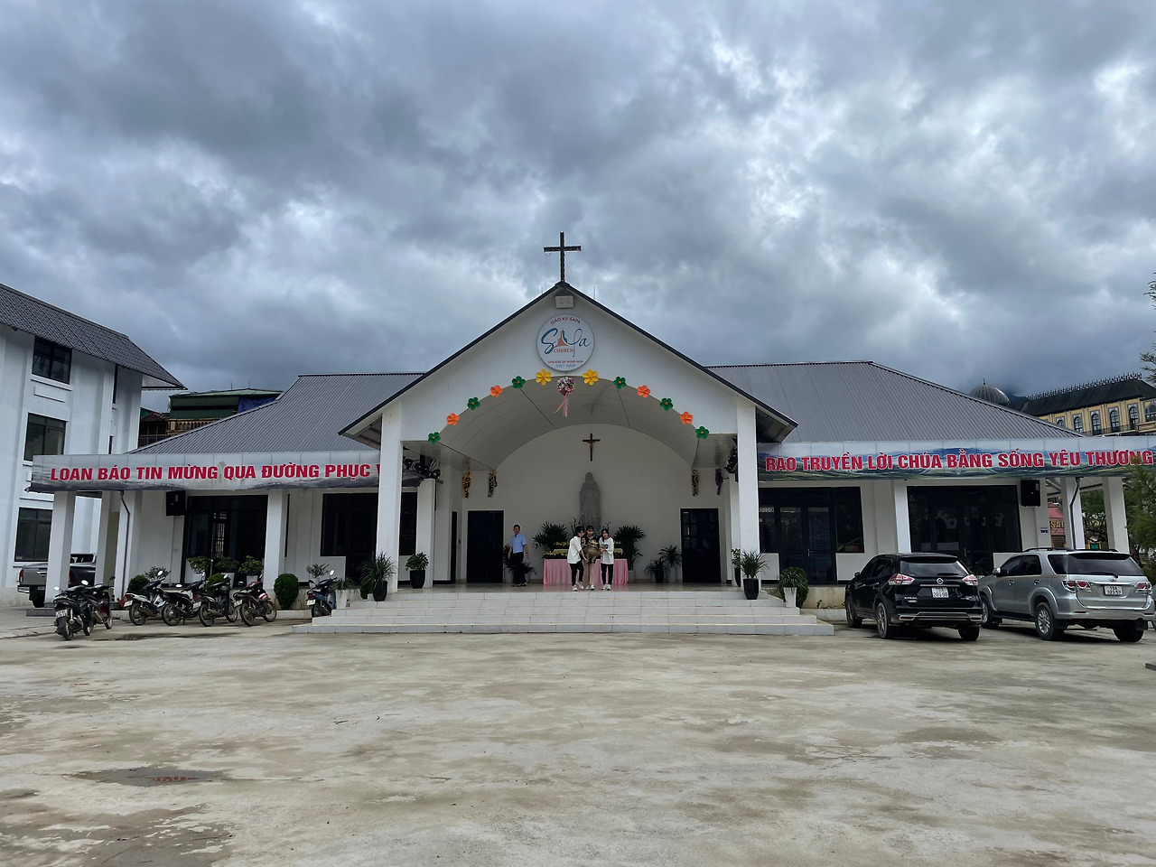 숙소에 짐을 풀고 사파 중심가로 다시 나왔다. 선플라자와 사파성당이 가장 눈에 띄었다. 선플라자는 쇼핑센터 겸 판시판이라는 가장 높은 산으로 올라가는 케이블카가 출발하는 곳이다. 교회건물로 가보기로 했다. 행사 준비를 하고 있는 듯했다. 건물의 정면은 아담하고, 내부도 작았지만 사파에선 제법 중심 공동체로서의 역할을 하는 것 같았다. 후면으로는 넓은 교회 광장이 있고 부속건물들도 많았다.