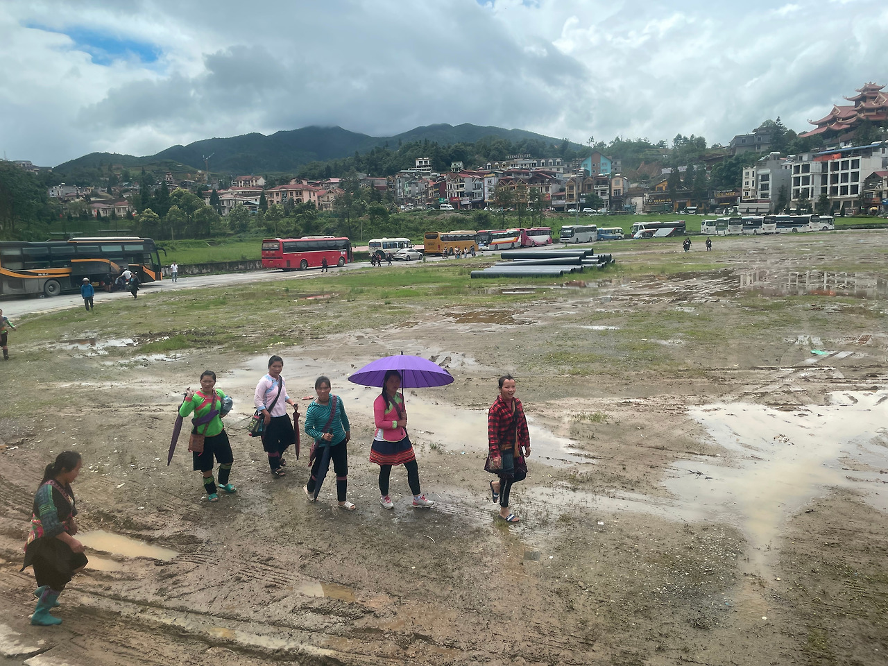 사파의 넓은 운동장 같은 곳에 멈추니 호객하려는 현지분들이 다가온다. 오토바이 타겠냐고, 택시 타겠냐고, 소수민족 분들 다가와 트래킹 하겠냐고. 너무 많이 다가오니 대응을 하기가 힘들었고, 날이 덥지 않아 숙소까지 걷기로 했다.