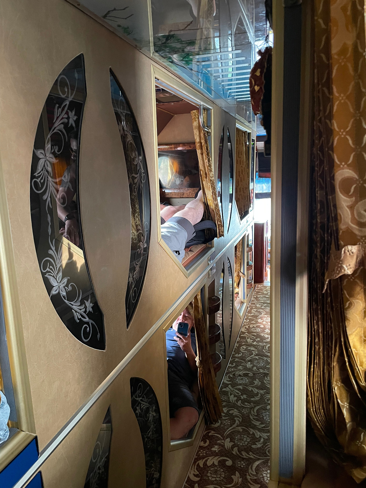 아침 일찍 버스를 타고 사파로 간다. 이번 버스는 그동안 탔던 버스와는 좀 다르다. 2명이 누워서 탄다. 1,2층으로 되어 있고 2 열이다. 통로가 얼마나 좁을지는 상상이 될 것이다. 거의 모든 칸이 커플들로 채워져 있다. 좀 좁기도 하다. 앉아가는 버스가 좀 편한 것 같다. 천장이 낮고 등받이가 없어 많이 불편했다. 눕는 거 좋아하는 사람은 뭐 괜찮겠지만.
