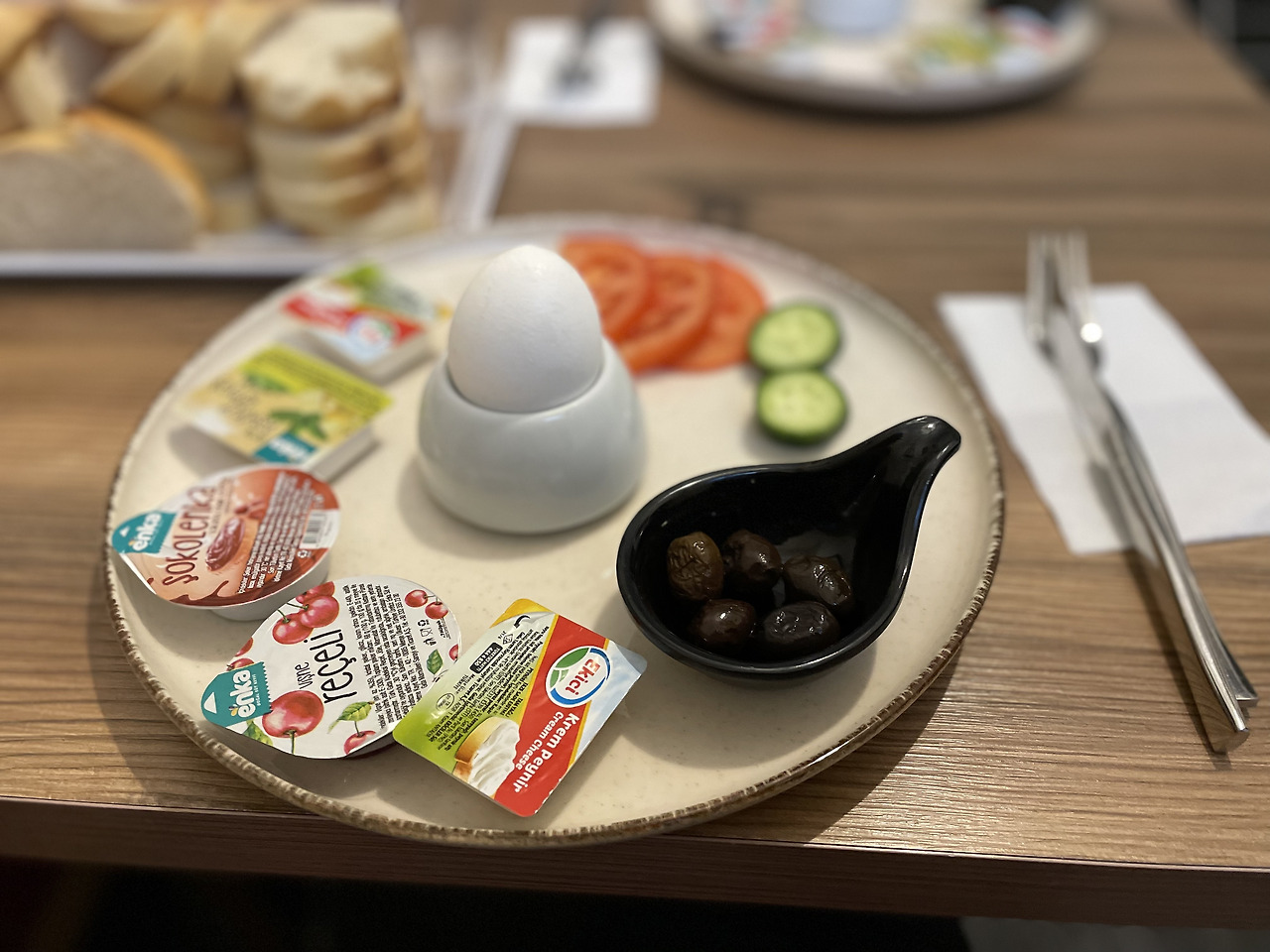 3성급 1인당 1만 원 정도의 호텔 조식은 아주 간단했다. 오이와 토마토 슬라이스, 에크멕(빵)은 우리나라 바게트 빵 같았고, 5-6종류의 발라먹을 것( 크림치즈, 체리 잼, 딸기잼, 버터, 뉴텔라 등)과 삶은 계란, 블랙 올리브 그리고 차이. 호텔 주인인 것 같은 프런트 담당 아저씨는 영어가 잘 안 되는 분이셨다. 대신 웃음이 많았다. 차이는 무한대로 주신다. 빵도 무한대로 먹을 수 있다. 고로, 아침식사는 절대로 부족하지 않다.