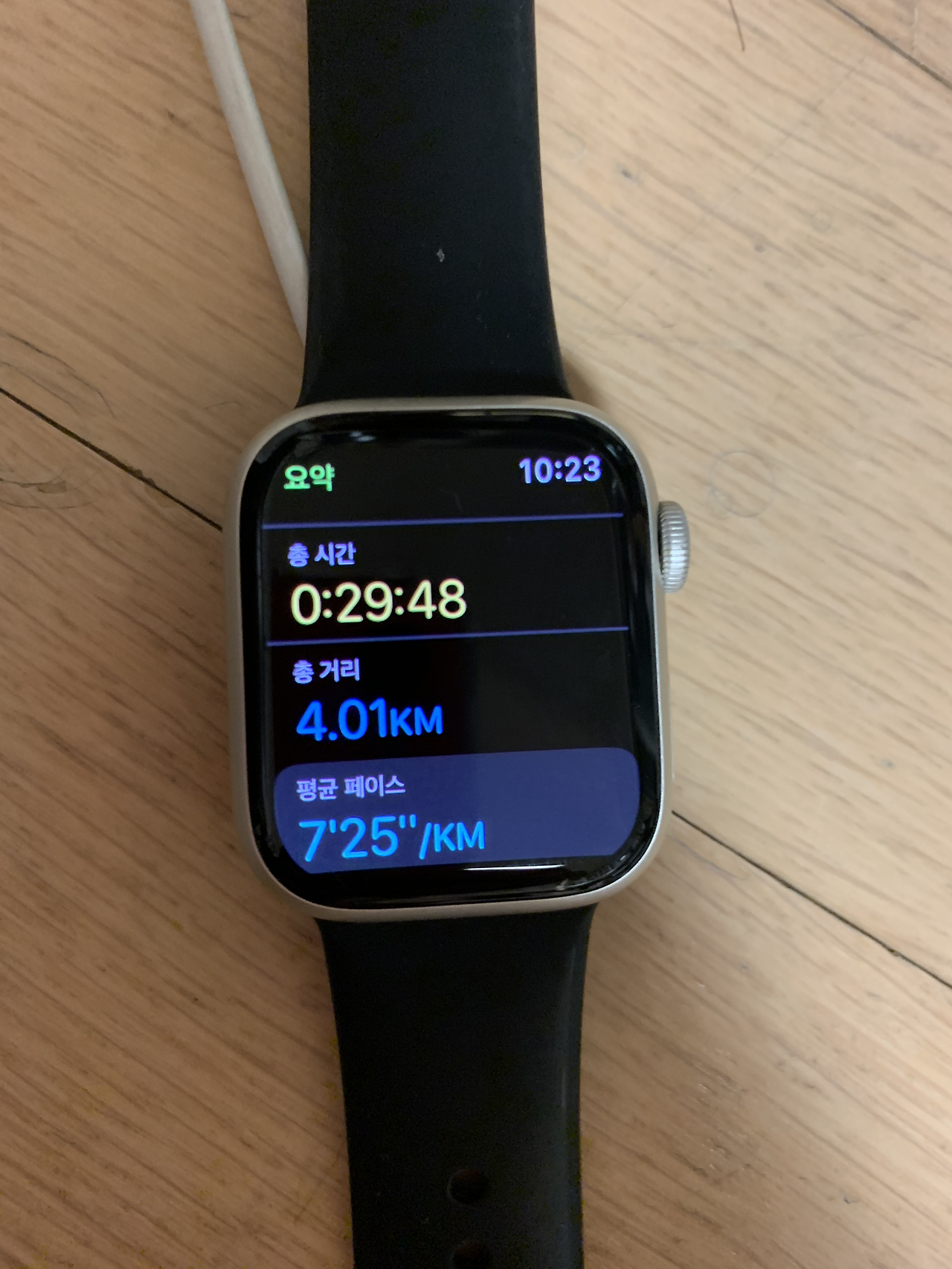계속 속도를 유지하겠다는 생각이 들어 힘들 때마다 기록 경신을 생각했다. 힘들 때는 내가 만든 구호를 조용히 읊조린다. "아싸 아싸 아싸 아~싸" 하고 말이다. 신기하게도 구호를 부르고 나면 다시 기운이 생긴다. 페이스를 잘 유지한 덕에 30분 이내 기록을 세웠다. 상을 주어야겠다는 생각으로 조깅화를 주문했다. 기록이 조금 더 잘 나오지 않을까? 문득 5킬로미터 마라톤 기록이 궁금해졌다. 대회에 나가봐도 괜찮지 않을까? 마라톤 대회에 신청해 봐야겠다. 잘했어 태리~