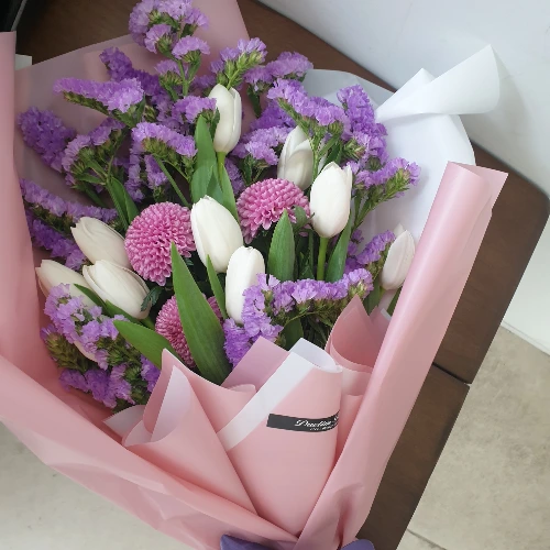 새벽일찍 일어나 꽃시장 다녀와 꽃다발을 사오고