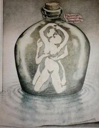 남녀의 그림 같기도 하지만, 돌고래 여러 마리가 보이기도 합니다.