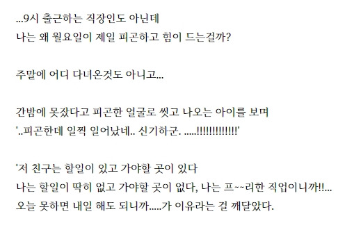 정보 위주로만 가득했던 글에서 누구나 공감할 법한 일상의 에피소드에 단문+장문을 섞어 리듬을 준 글로!