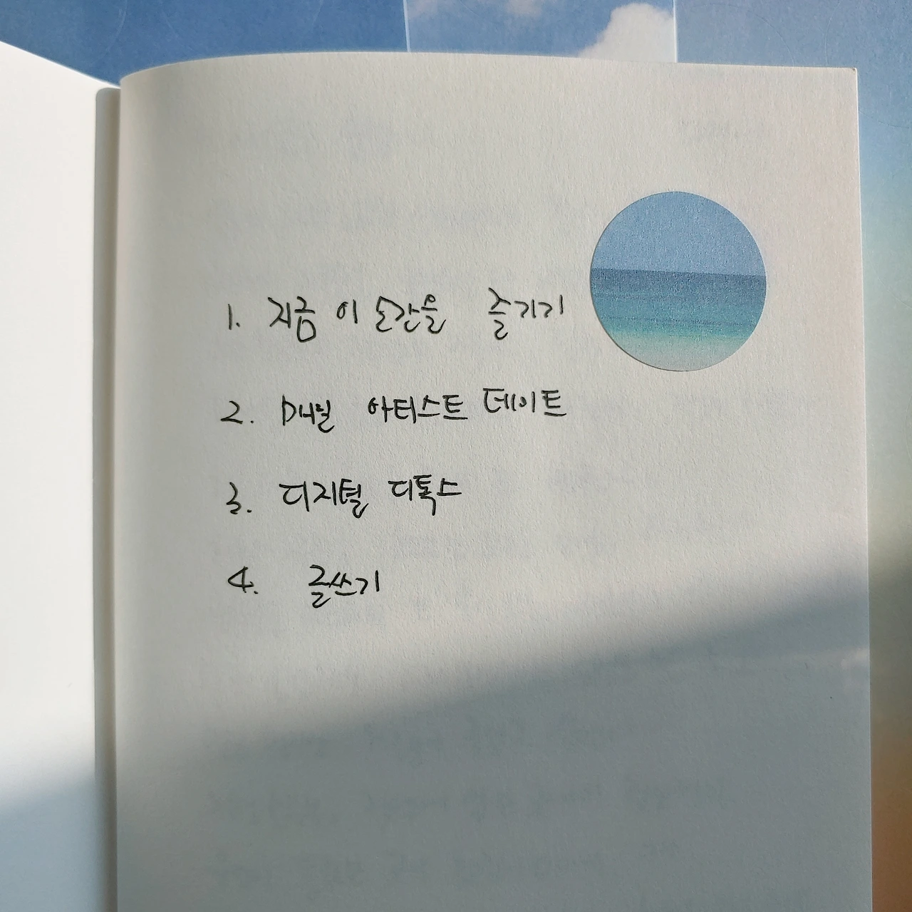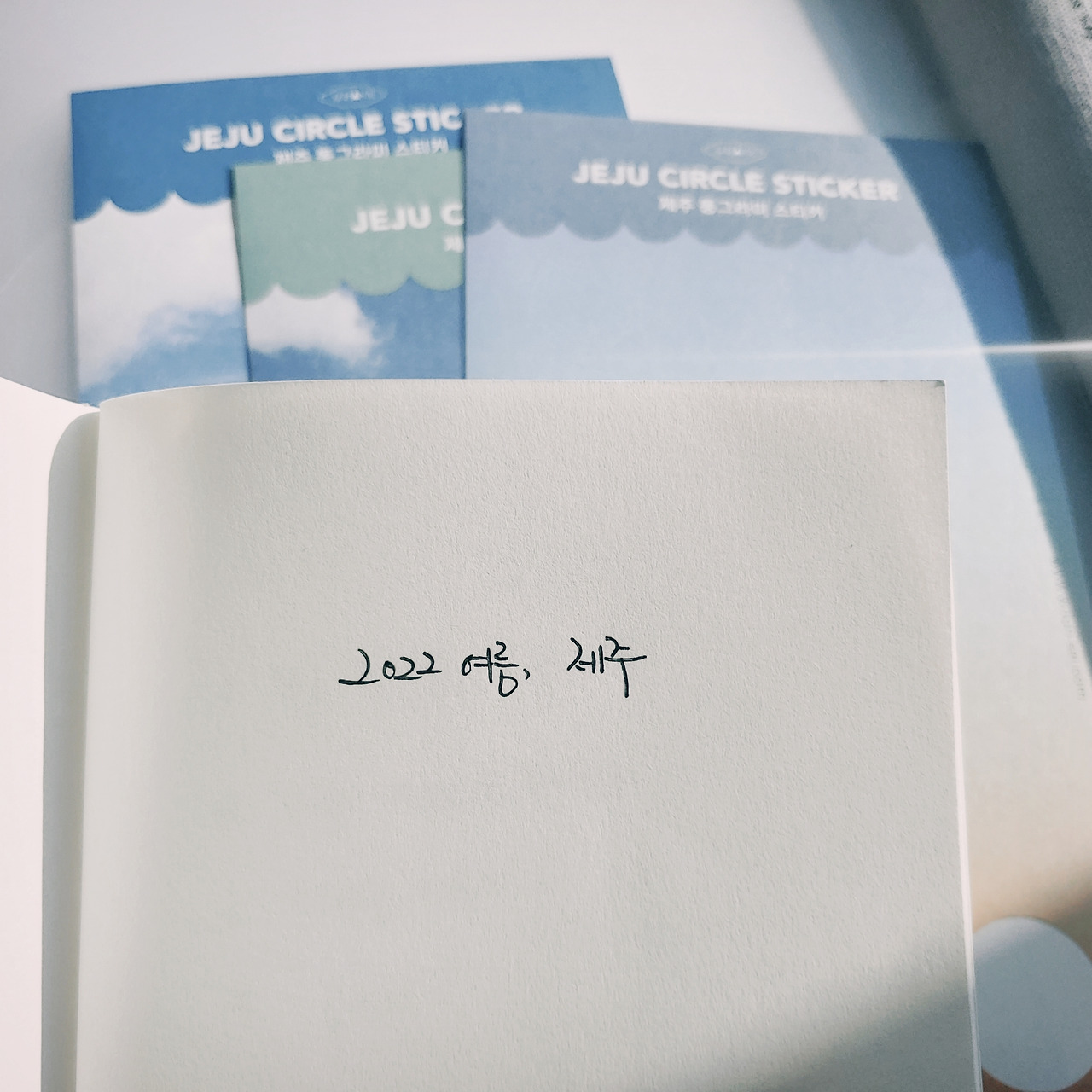 작년에 제주에서 샀던 예쁜 노트와 스티커. 아끼고 아끼다가 (그래서 한 번도 못쓰다가) 이번에 가져왔다. 작은 사이즈라 들고 다니기 좋다. 소중한 추억이 깃든 노트에 기록을 남겨볼까? 이번 여름엔 조금 더 현실적으로 내가 할 수 있는 다짐을 적어놓는다.
