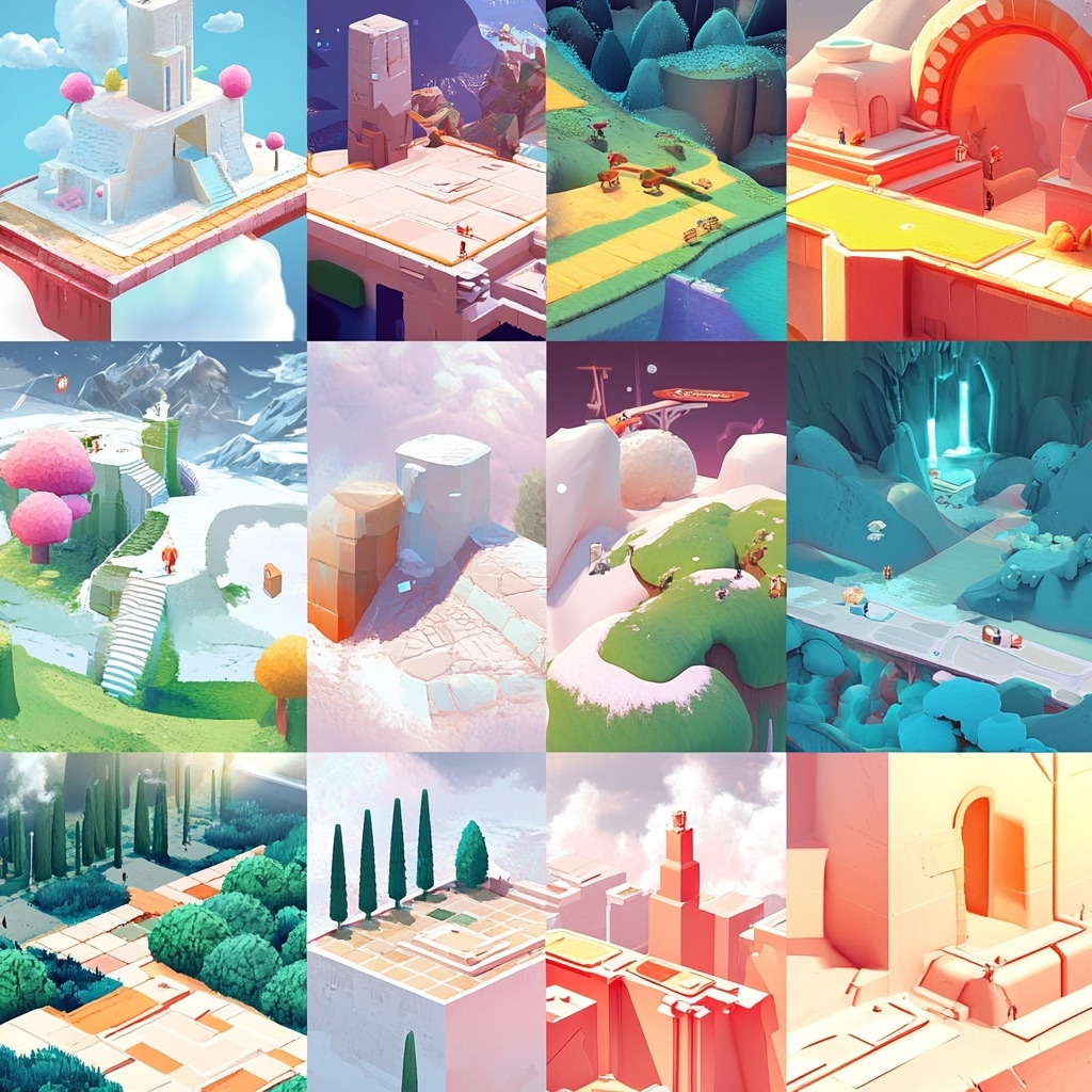 A collage of hybrid casual mobile games, showing simple yet strategic gameplay elements, colorful and minimalist design