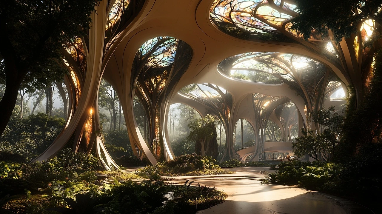 내부 기둥이 자연의 나무를 본떠 설계되었으며, 숲 속에 들어온 듯한 신비로운 공간감을 선사합니다. 단순한 장식적 요소를 넘어, 구조적 안정성에도 기여하게끔 계산된 디자인입니다.