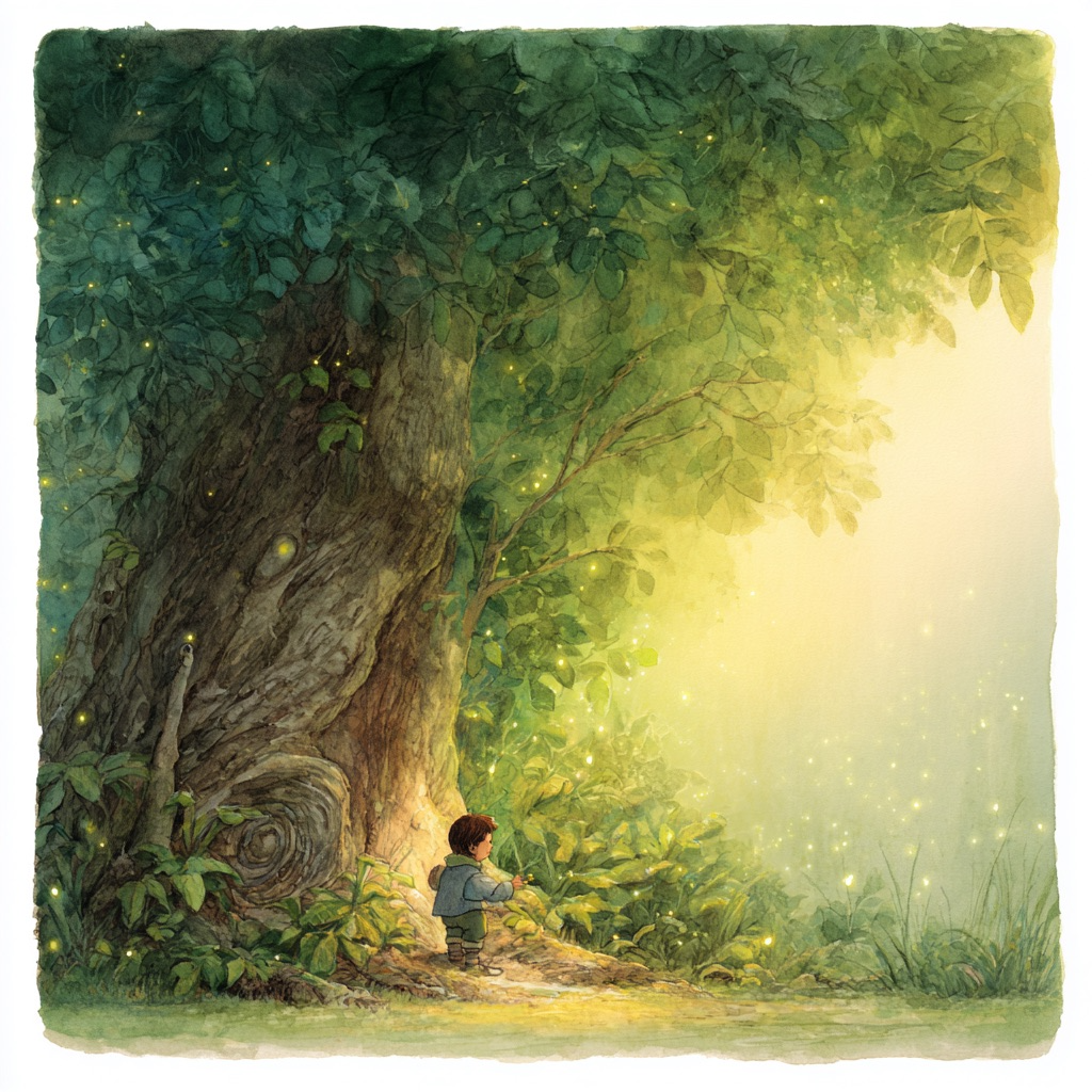 작은 잎사귀가 물었어요. “할아버지, 왜 나이테가 그렇게 많아요?”