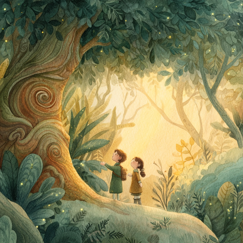 할아버지 나무는 햇살, 비, 새들의 노래가 담긴 자신의 인생 이야기를 들려줍니다. 사랑과 기억이 세대를 이어가는 따뜻한 이야기예요.