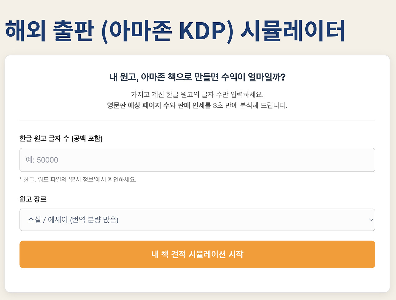 복잡한 과정은 다 뺐습니다. 그저 작가님이 땀 흘려 쓰신 한글 원고의 '글자 수'만 입력해 주세요. 그러면 이 도구가 알려줄 겁니다.