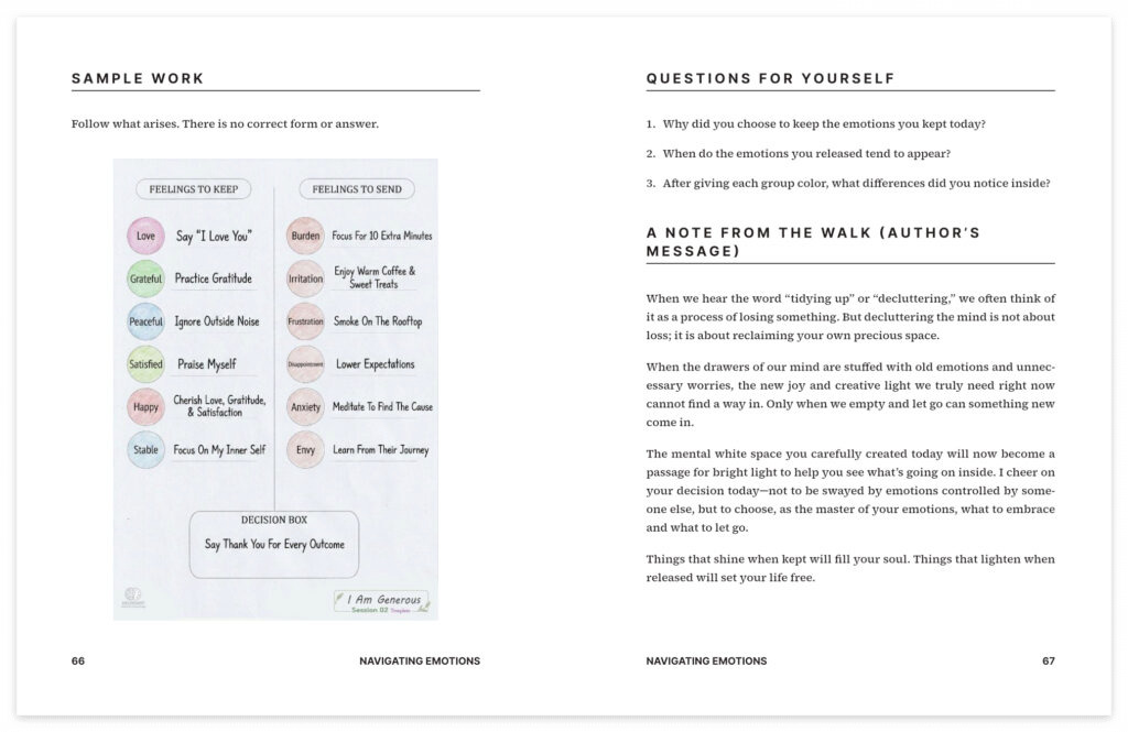내지는 독자가 직접 글을 쓰거나 활동을 해야 하는 워크북의 특성을 최우선으로 고려했습니다. 아마존 베스트셀러 워크북들이 선호하는 8.5 x 11 인치 판형을 채택하여, 메모와 활동을 위한 공간을 넉넉하게 확보했습니다.