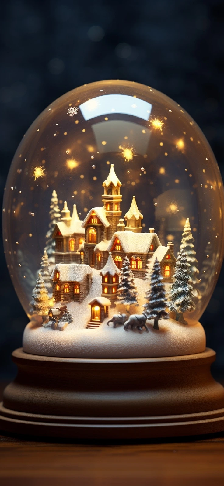 크리스마스 아이폰 배경화면 1: 스노우 글로브 안의 마을