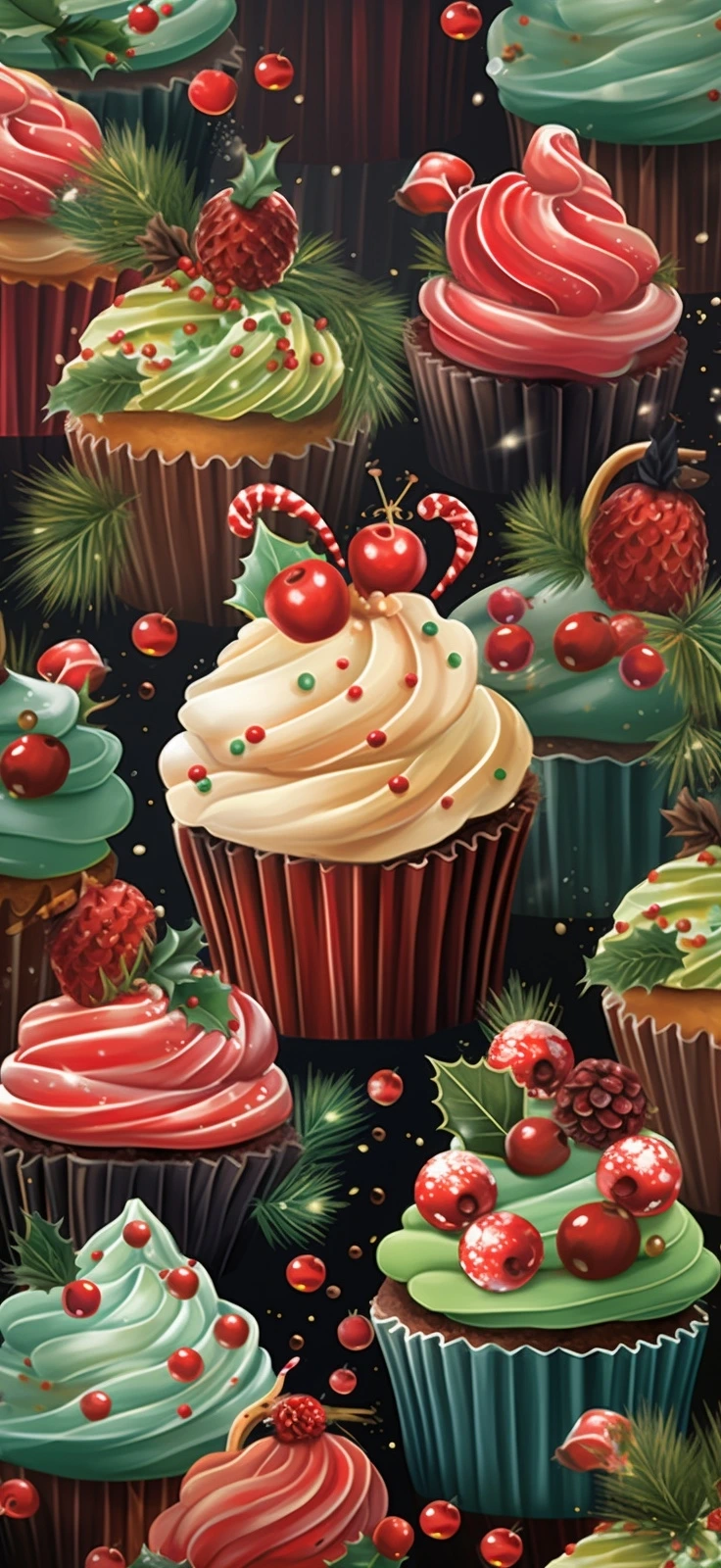 크리스마스 아이폰 배경화면 19: 축제 크리스마스 컵케이크