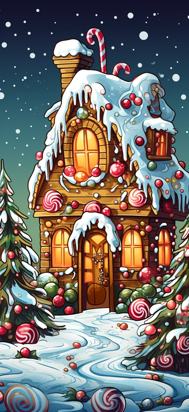 크리스마스 아이폰 배경화면 7: 기발한 진저브레드 하우스