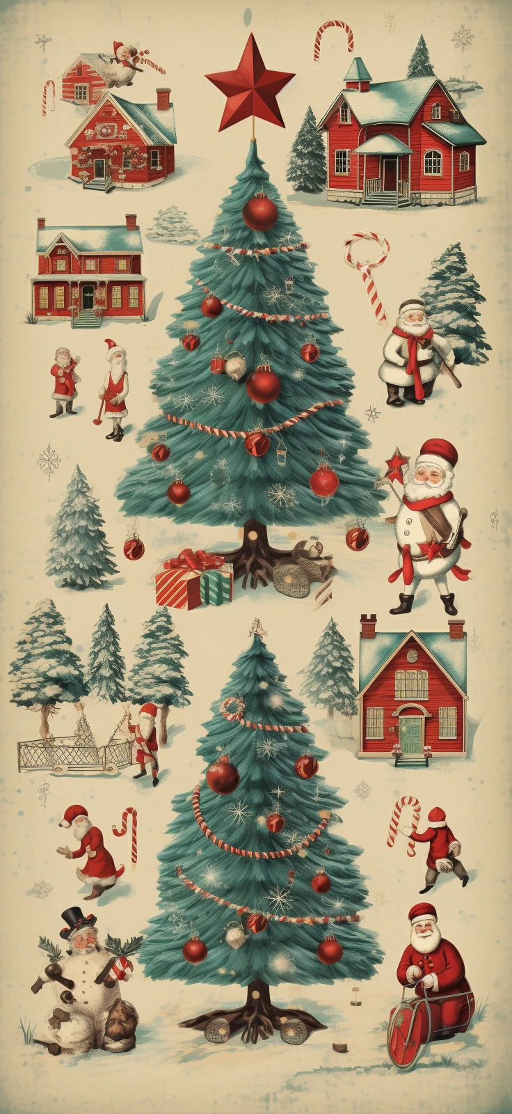 크리스마스 아이폰 배경화면 5: 레트로 크리스마스 일러스트