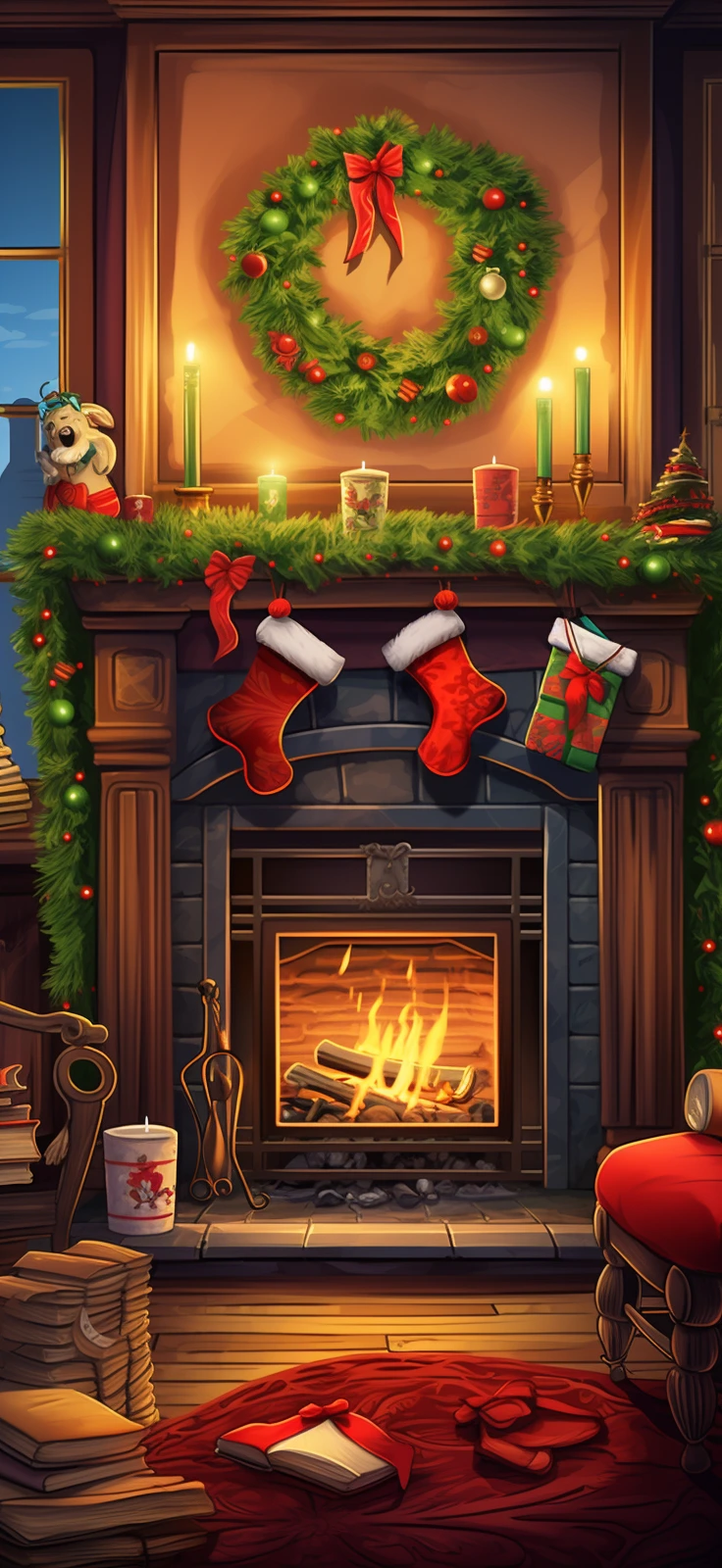 크리스마스 아이폰 배경화면 12: 아늑한 크리스마스 벽난로