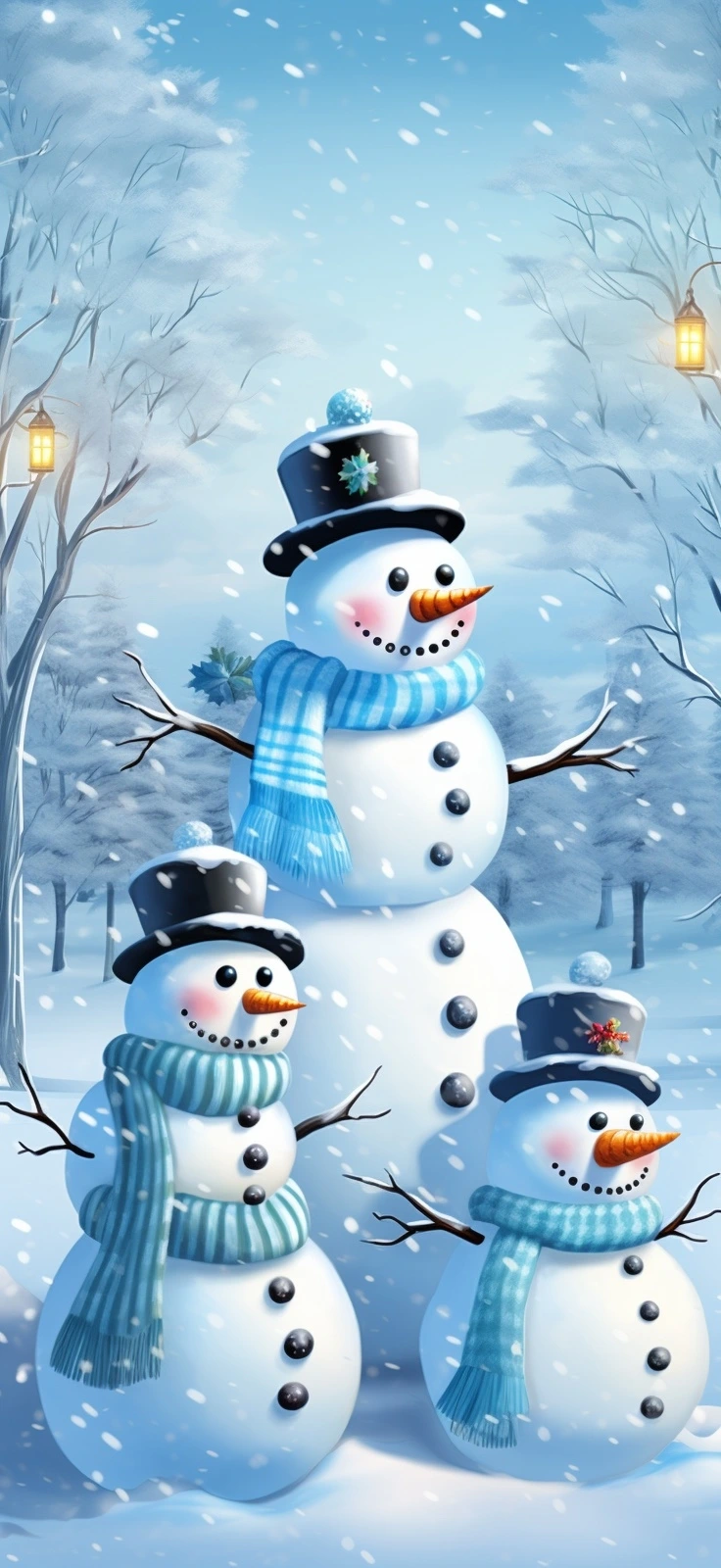 크리스마스 아이폰 배경화면 20: 눈사람 가족