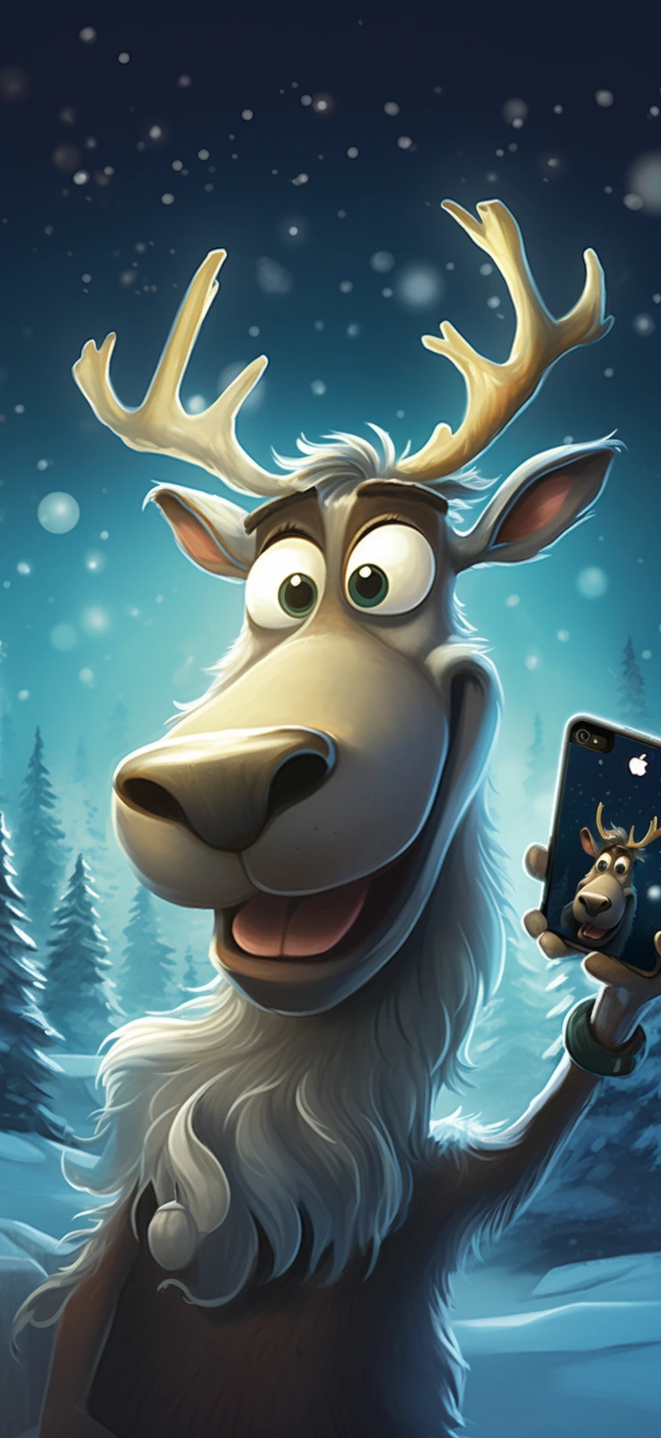 크리스마스 아이폰 배경화면 3: 귀여운 순록 셀카