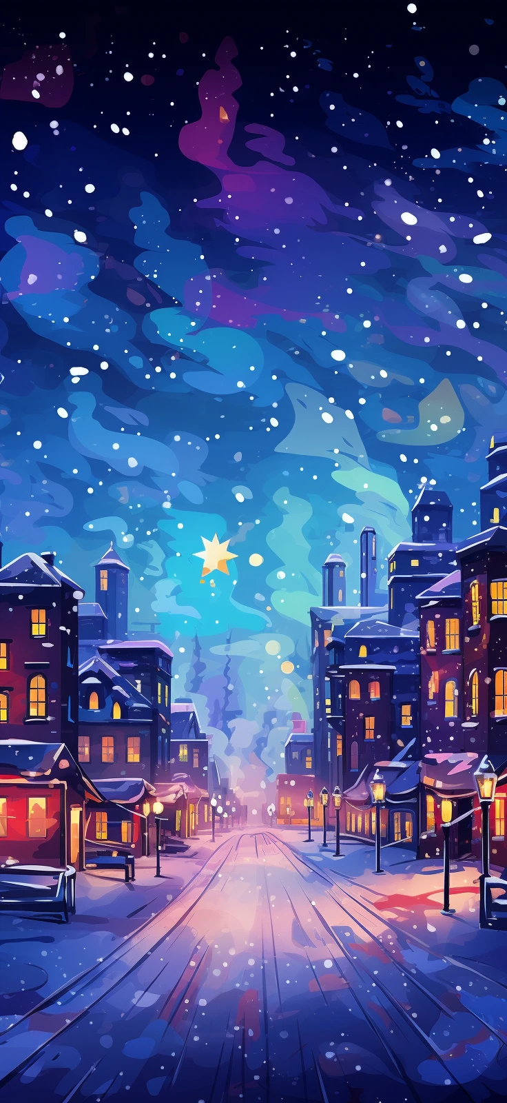 크리스마스 아이폰 배경화면 18: 별이 빛나는 도시의 크리스마스 밤