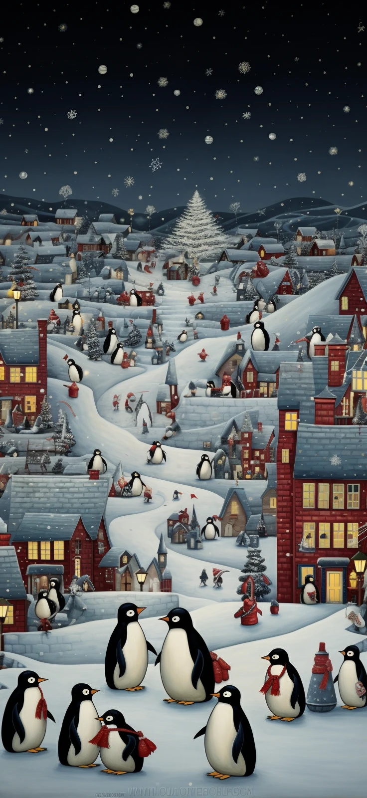 크리스마스 아이폰 배경화면 9: 유쾌한 펭귄 크리스마스 파티