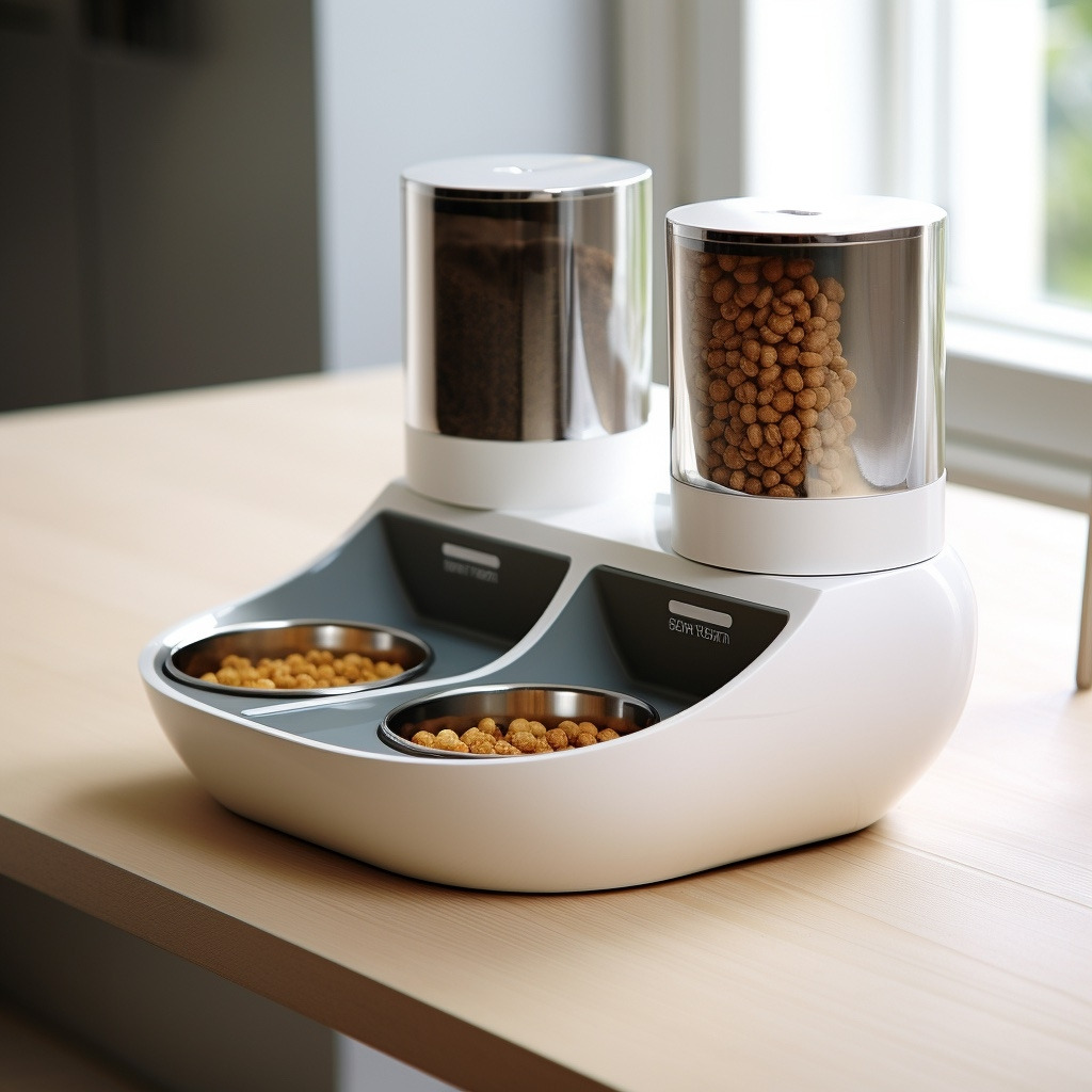 자동화된 급식 일정을 위해 스마트 기술을 통합하는 혁신적인 애완동물 급식기를 설계합니다.