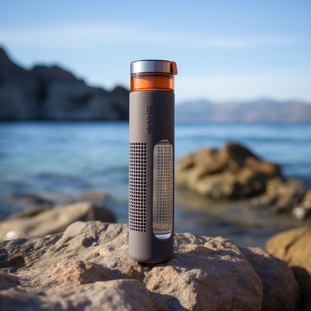 휴대성, 효율성, 여행 및 일상 사용에 적합한 깨끗하고 현대적인 디자인에 중점을 두고 개인용 정수 텀블러를 디자인합니다.