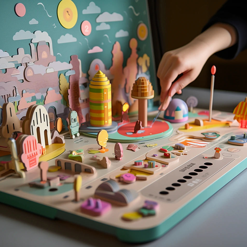 학습과 발달에 도움이 되는 생생한 색상, 촉각 소재 및 기술을 통합하여 어린이를 위한 재미있는 인터랙티브 교육 장난감을 만듭니다.