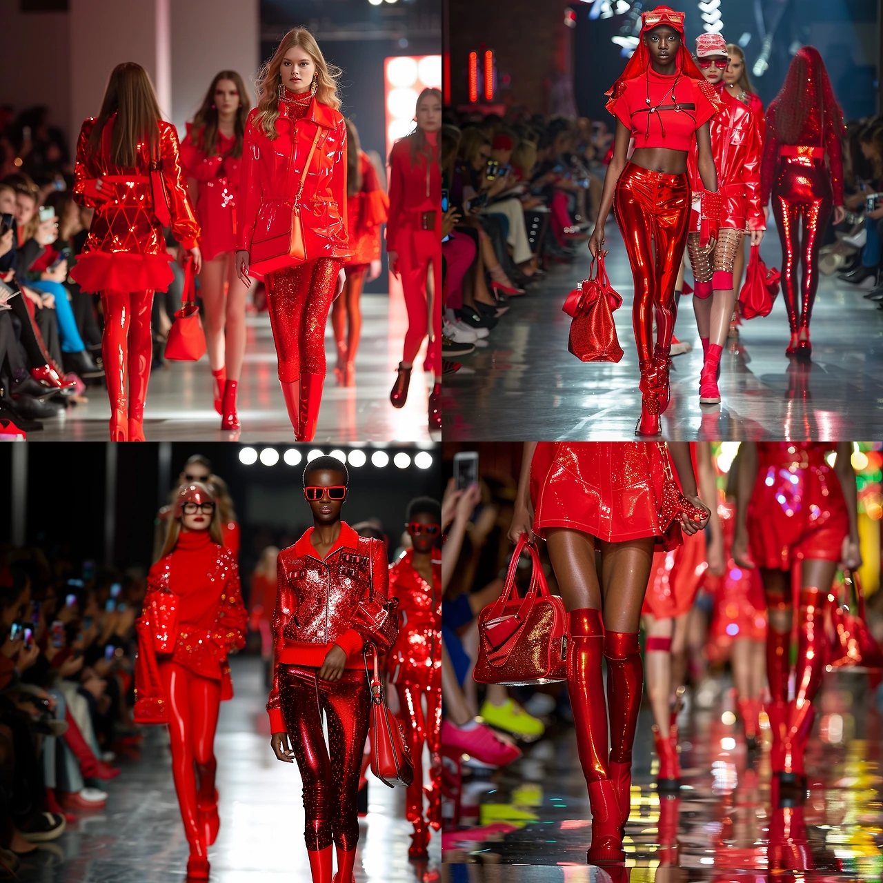 빨간색은 빨간색 스타킹, 신발, 가방과 같은 강렬한 제품에 사용되면서 두각을 나타내고 있습니다. 이러한 트렌드는 과감한 선택과 생동감 있고 시선을 사로잡는 작품으로 눈에 띕니다.
