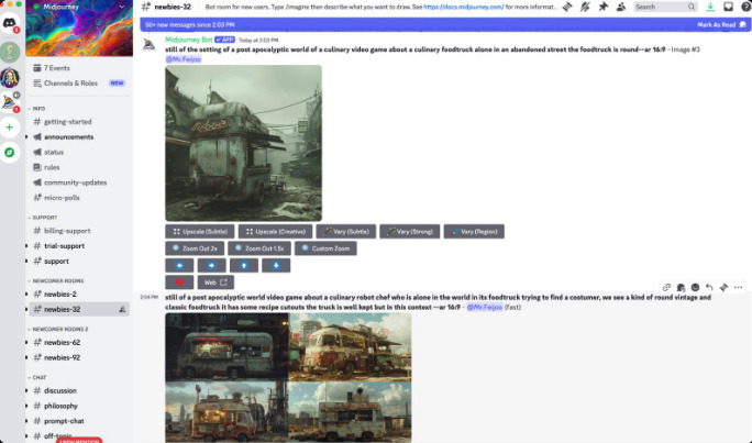 미드저니는 챗GPT처럼 간단히 가입할 수 있는 것이 아닙니다. 처음 가입할 때부터 디스코드라는 채팅 앱을 통해 약간 복잡한 절차를 거쳐야 합니다. 디스코드는 주로 게이머들이 사용하는 음성 채팅 앱으로, 여성 디자이너나 30대 이상의 디자이너들에게는 익숙하지 않을 수 있습니다.
