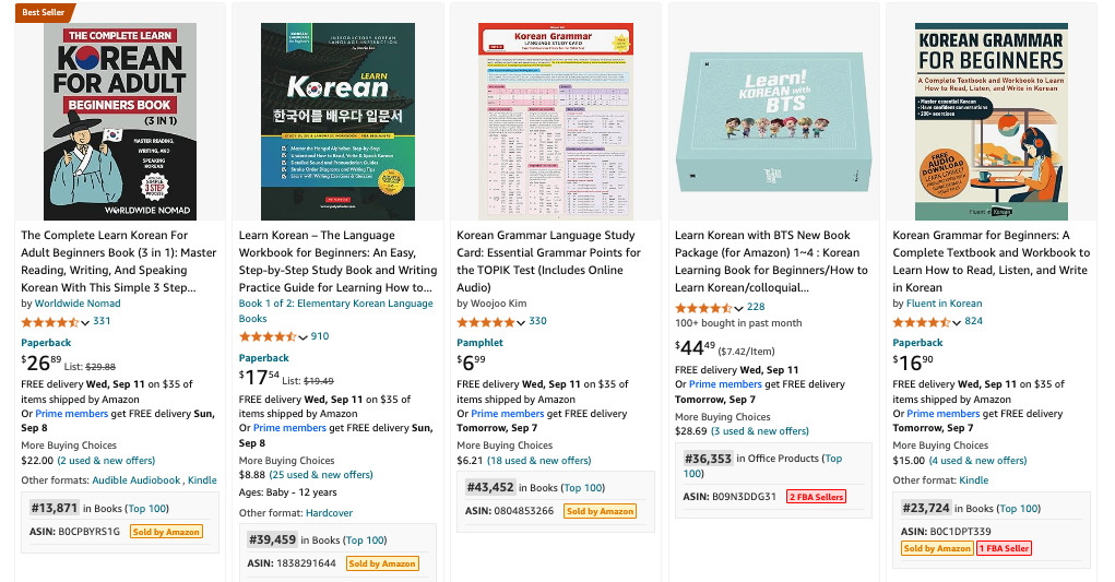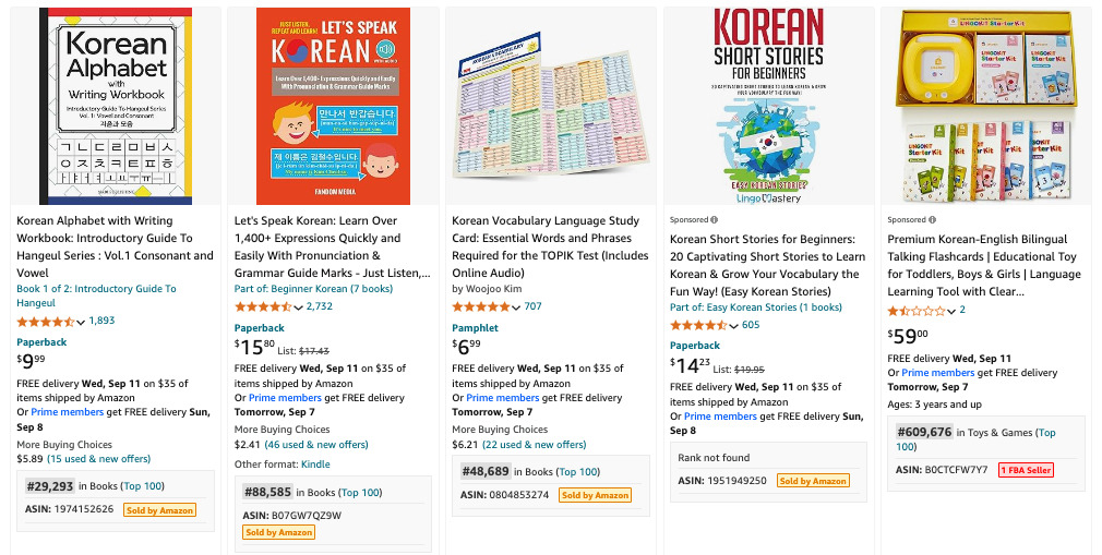 아마존에 한국어 학습서를 출판했다면 위에서 나온 키워드들에 들어간 단어가 책 제목이나 부제목, 또는 키워드 (출판시 넣으며 고객에게 보이지 않음)안에 들어가야 합니다. 그렇게 해야 검색 결과에 자신의 책이 포함되기 때문입니다.