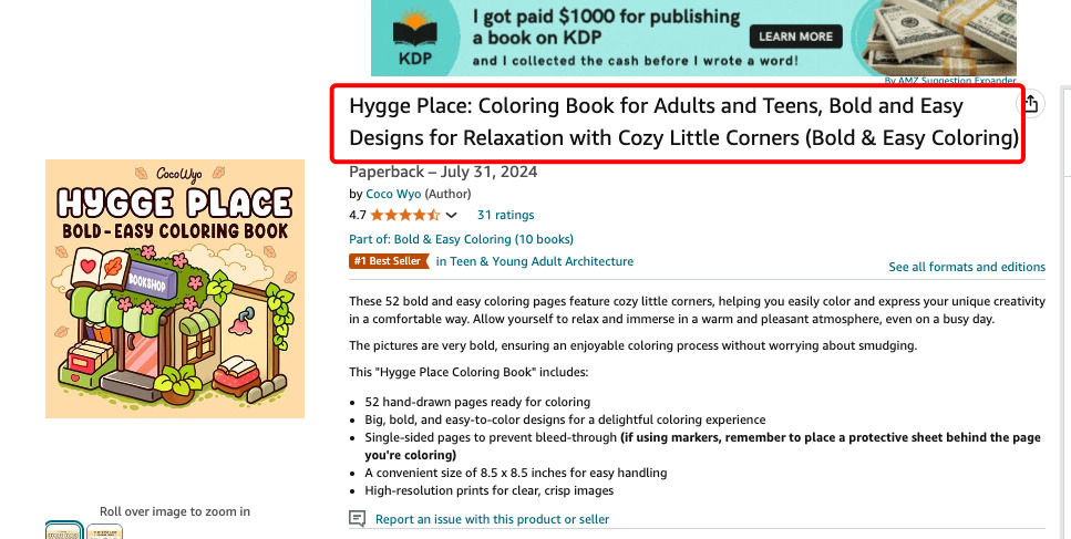 메타데이터에 검색노출을 위한 키워드를 넣으면 노출이 잘되고, 책이 팔릴 가능성이 높아지는 사실을 인지하고 적극적으로 활용하는 사람들이 있습니다. 공책이나 컬러링북을 아마존에서 출판하는 Low Content Book작가들입니다.
