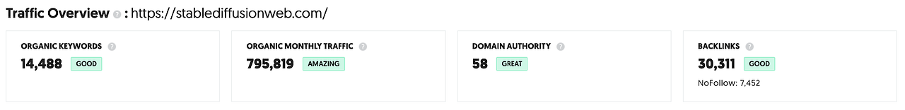 스테이블 디퓨전의 한 달 방문자는 79만 명입니다. (미국 기준)