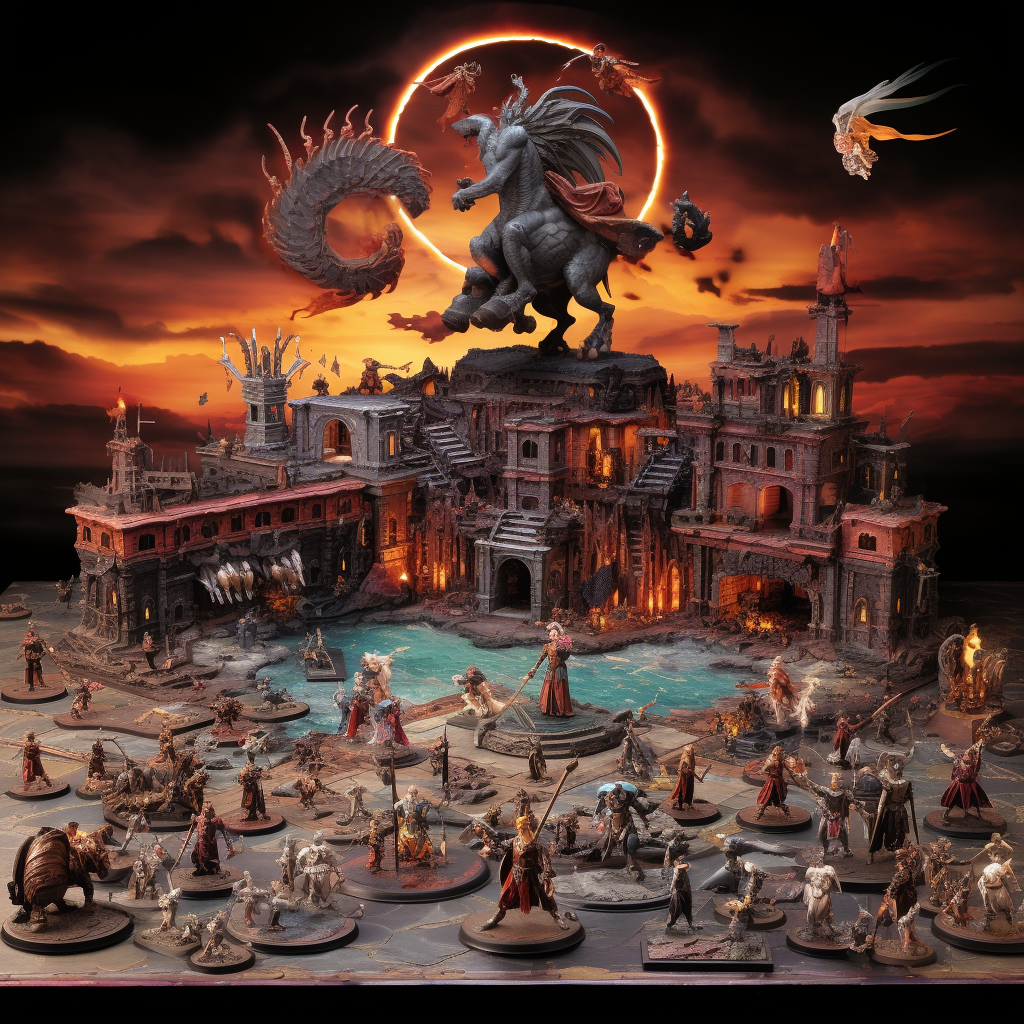 Purpose: This prompt challenges the AI's understanding of historical and fantasy elements and its ability to render dynamic action. It also tests the AI's capacity for spatial composition, portraying depth, and handling complex lighting and shadow interactions.