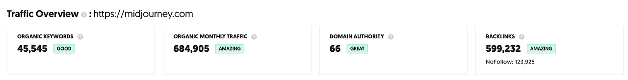 단순한 방문자 숫자로 보면 스테이블 디퓨전이 가장 많은 것을 알 수 있습니다. 그러나 백링크 숫자는 미드저니가 다른 사이트들보다 20배 이상 많습니다. 백링크(Backlink)란 다른 사이트에서 해당 사이트로 링크를 건 것을 의미합니다. 즉 미드저니에 관해서 인터넷에 올라온 글이 나머지 2개의 AI 그림 사이트보다 훨씬 많다는 것을 의미합니다.