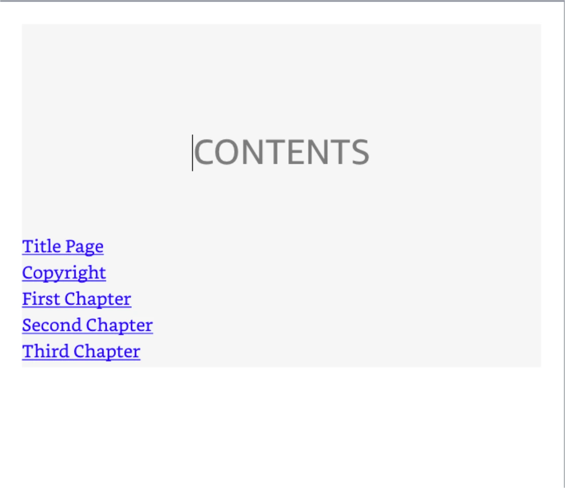 좌측의 메뉴들을 눌러서 전자책이 정확하게 읽히는지 확인합니다. Table of Contents의 각 챕터들을 선택해서 올바른 텍스트가 뜨는지 확인합니다.