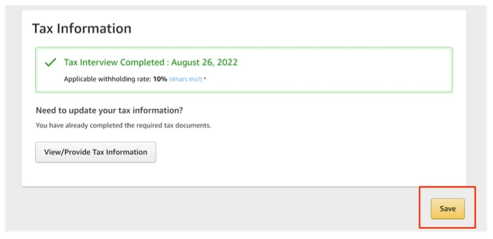 19) Save를 클릭합니다. 이것으로 아마존 출판 계정 가입이 끝났습니다.