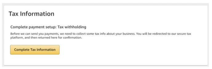 12) Getting Paid 부분을 마치고 나면 Tax Information 버튼이 나타납니다. 이 단계는 아마존에서의 책 판매 수익에 대해 미국 소득세 원천징수를 하기 위한 세금 관련 정보 입력입니다. Complete Tax Information을 클릭합니다.