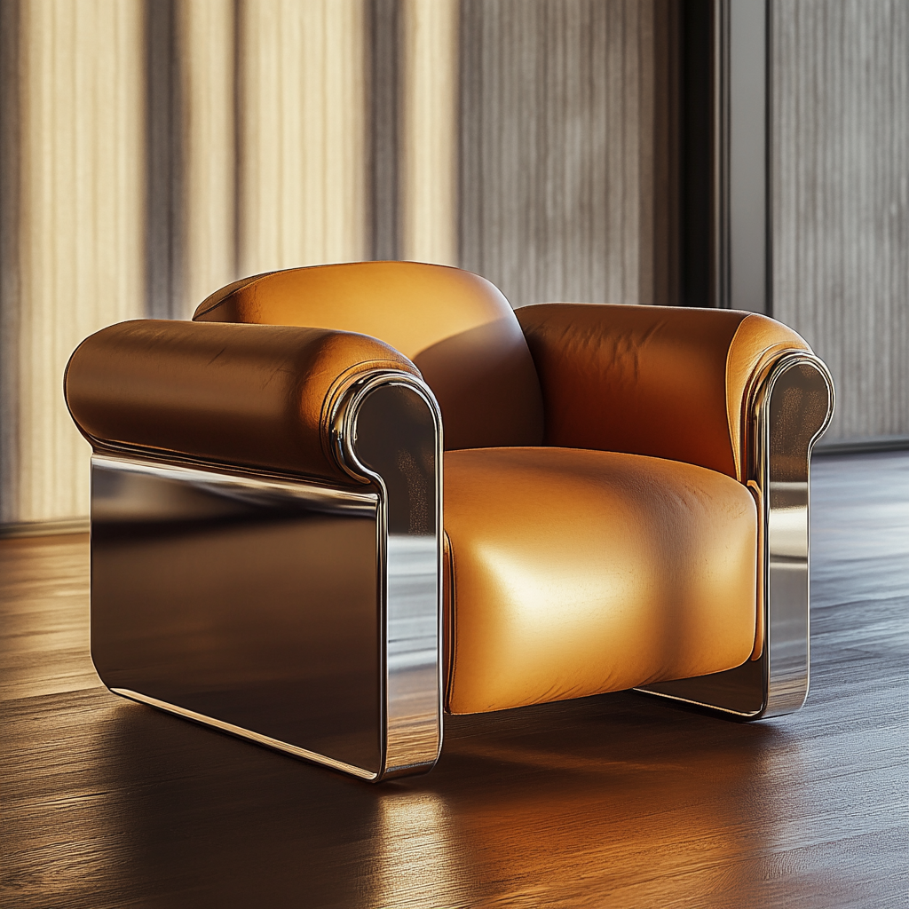 미드저니 프롬프트: Luxury armchair designed by Le Corbusier, featuring leather and chrome in a modernist style, set in a minimalist loft, illuminated by studio lighting, captured during golden hour. (르 코르뷔지에가 디자인한 고급 안락의자, 모더니스트 스타일의 가죽과 크롬, 미니멀리스트 로프트, 스튜디오 조명)