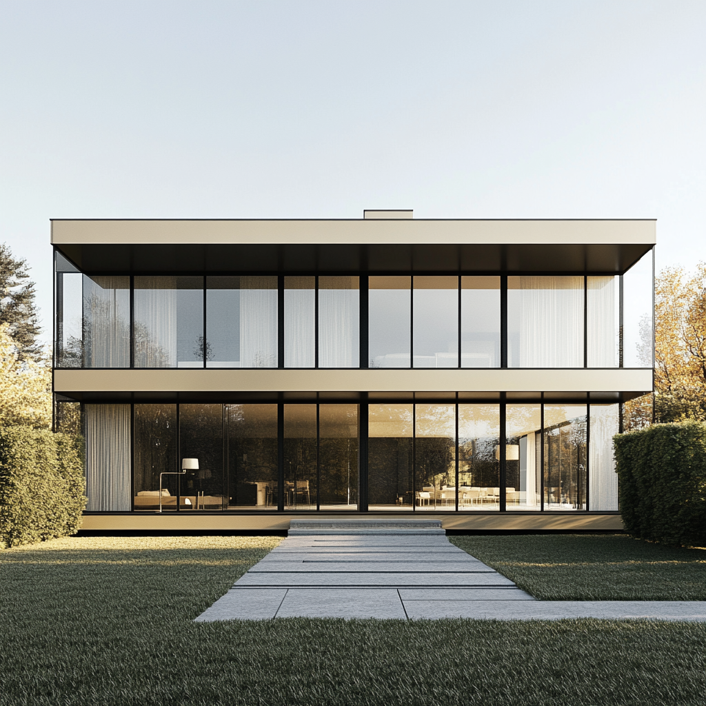 예: Generate a modernist residential building with clean lines and large glass facades, inspired by Mies van der Rohe. (미스 반 데어 로에의 영향을 받은, 깨끗한 선과 넓은 유리 외관이 특징인 모던한 주택을 생성해 주세요.)