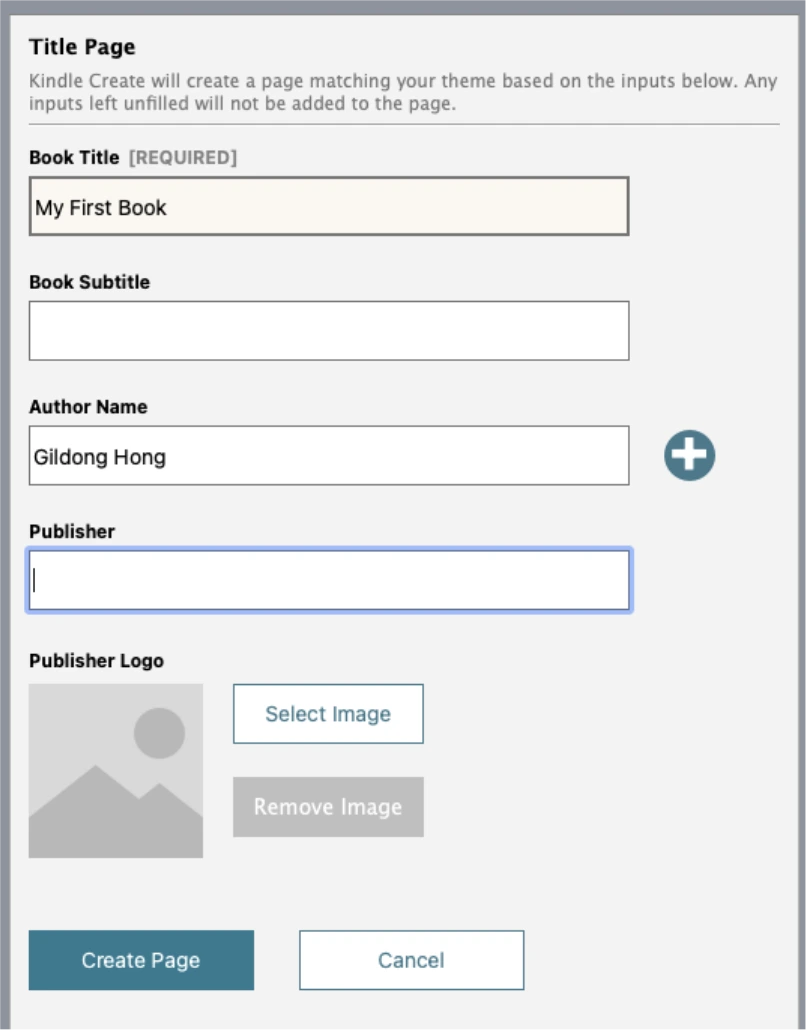 책 제목과 저자명을 넣어주고, Create Page를 클릭합니다.