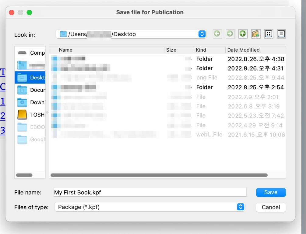 OK 버튼을 누르면 아마존 표준 ebook 파일인 KPF 파일이 저장됩니다. 출판할 때는 KPF 파일과 표지를 따로 업로드합니다.