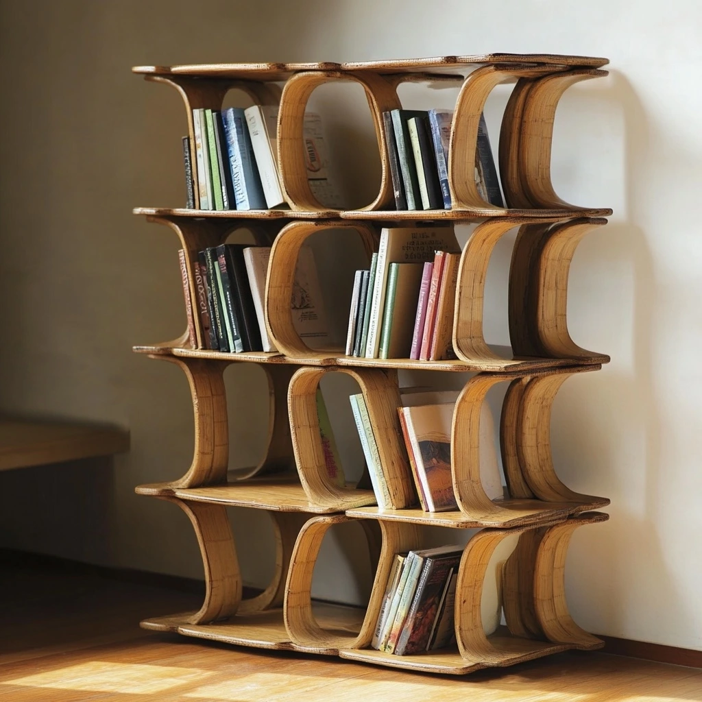재활용 대나무로 만들어진 친환경 모듈형 책장.