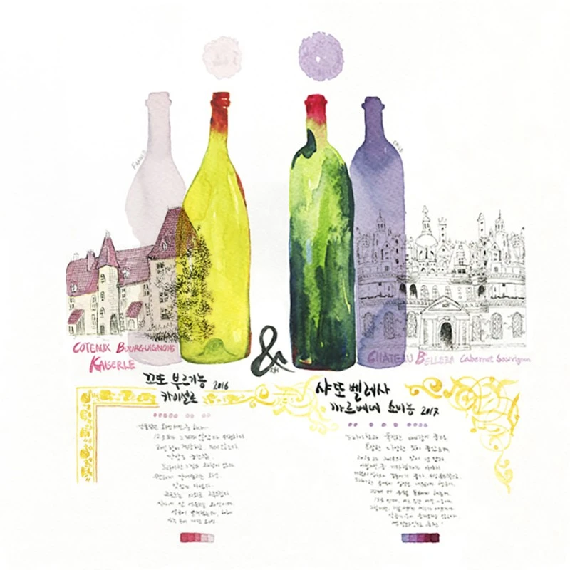 와인의 라벨에 그려진 그림을 연필 스케치 없이 천천히 따라 그리다 보면 꽤나 재미지다.