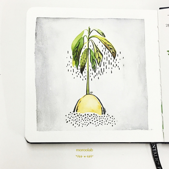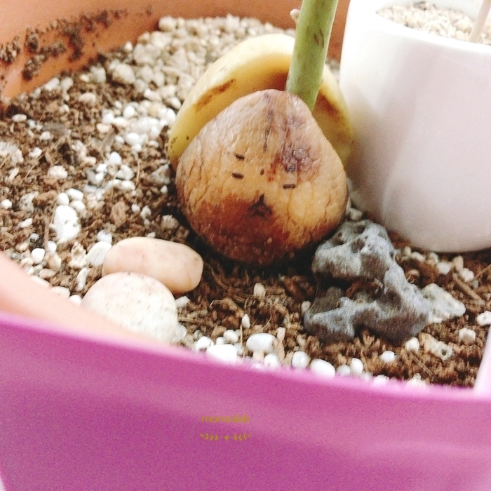 아직 새 순밖에 없지만 벌써 아보카도의 씨앗 부분이 갈변되면서 쭈글거렸다.