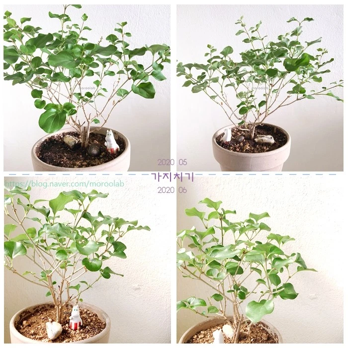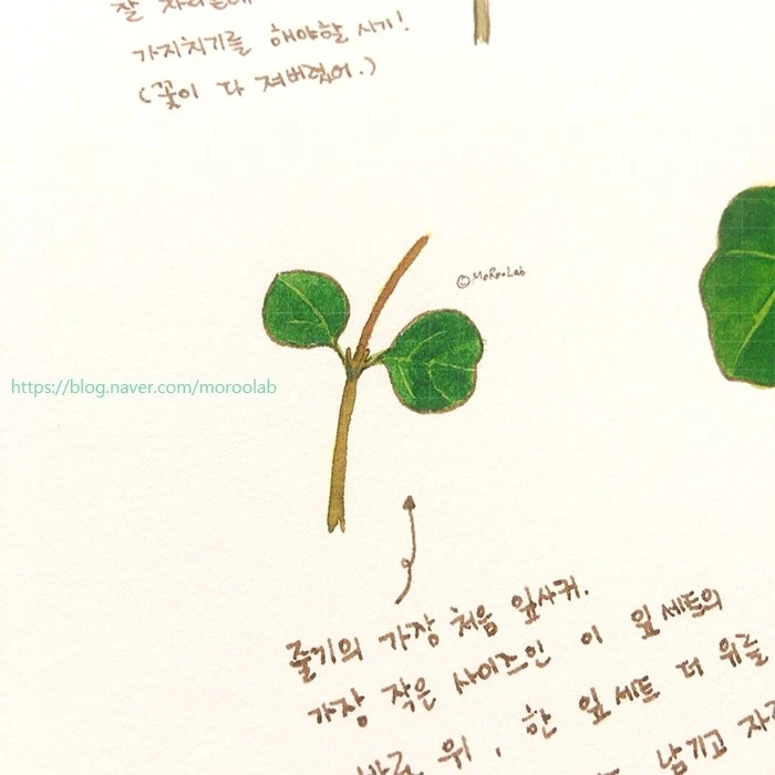 가지에서 처음 시작하는 잎은 나중에 자라는 잎보다 확연히 작다.